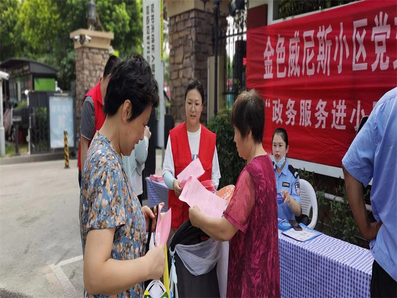 區行政審批局黨支部在金色威尼斯小區設置政務服務高頻事項窗口,開展義診醫療咨詢、反詐宣傳。針對“老、弱、病、殘”等特殊群體高頻辦理事項提供咨詢、代辦幫辦服務,公安窗口開展反詐宣傳。